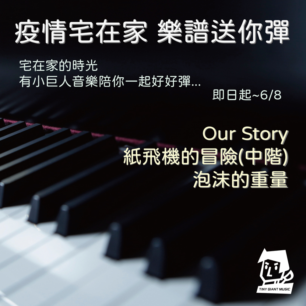 現在~限時釋出「Our Story」、「紙飛機的冒險(中階) 」、「泡沫的重量」三首曲目的數位樂譜